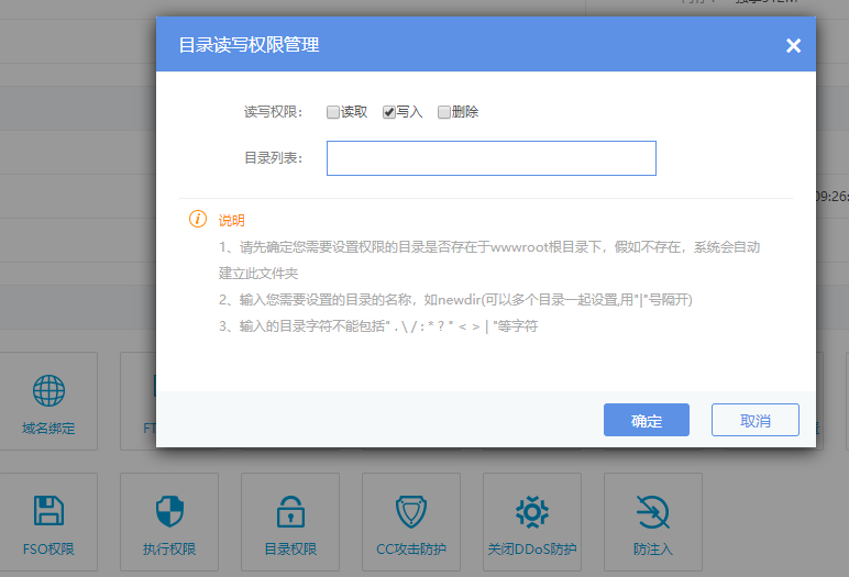 1请先确定您需要设置权限的目录是否存在于wwwroot根目录下,假如不存在,系统会自动建立此文件夹。